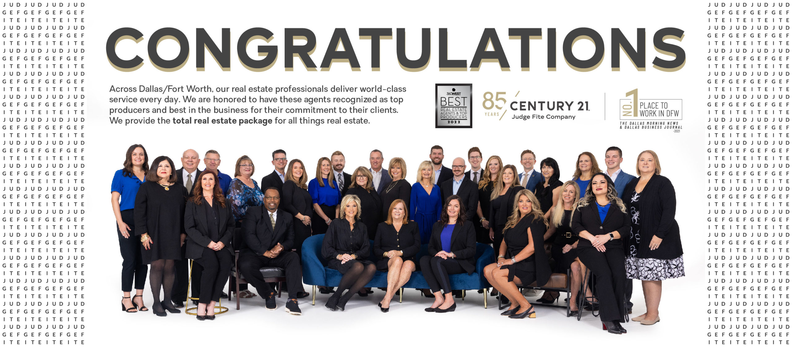 DALLAS/FORT WORTH, TX – Congratulations to CENTURY 21 Judge Fite Company real estate professionals receiving recognition as 360 West Magazine’s 2022 Best Real Estate Agents and Top Producers. Selected by clients and … Continued
