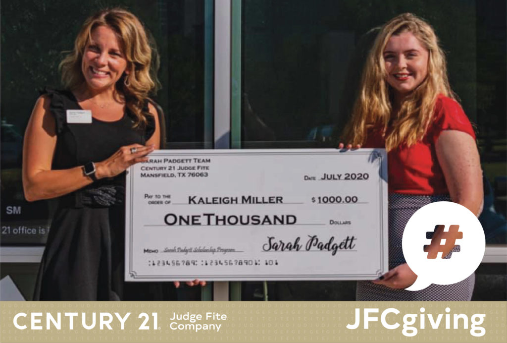 Congratulations to Kaleigh Miller from Mansfield High School on receiving this scholarship, and thank you to The Sarah Padgett Team for their commitment to giving back!