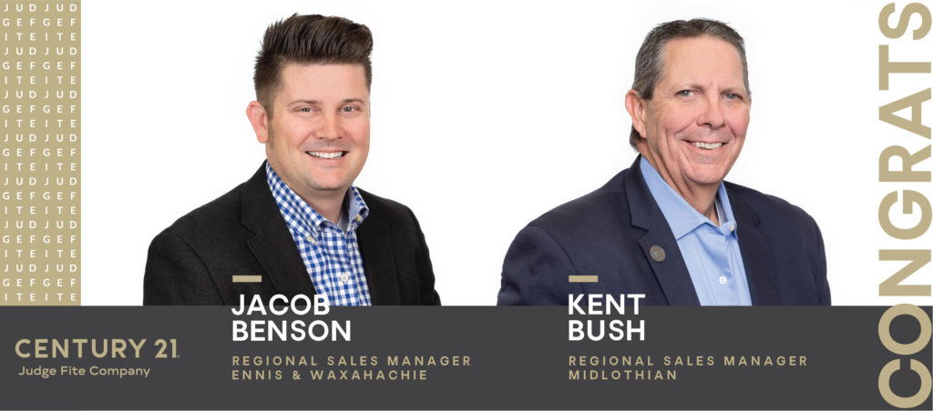 DALLAS/FORT WORTH, TX – CENTURY 21 Judge Fite Company names Jacob Benson regional sales manager of the Ennis and Waxahachie Regional Offices. Kent Bush will continue the role as regional sales manager in the Midlothian Regional Office.